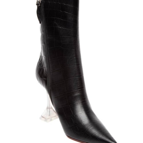 Amina Muaddi – Women’s Giorgia Croc Leather Mid-calf Boots