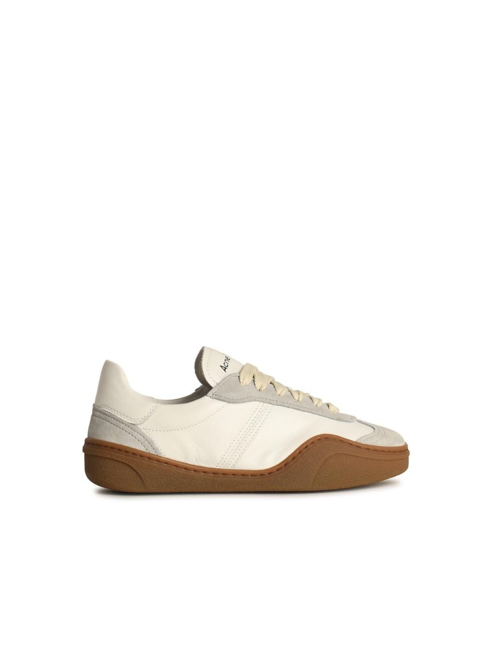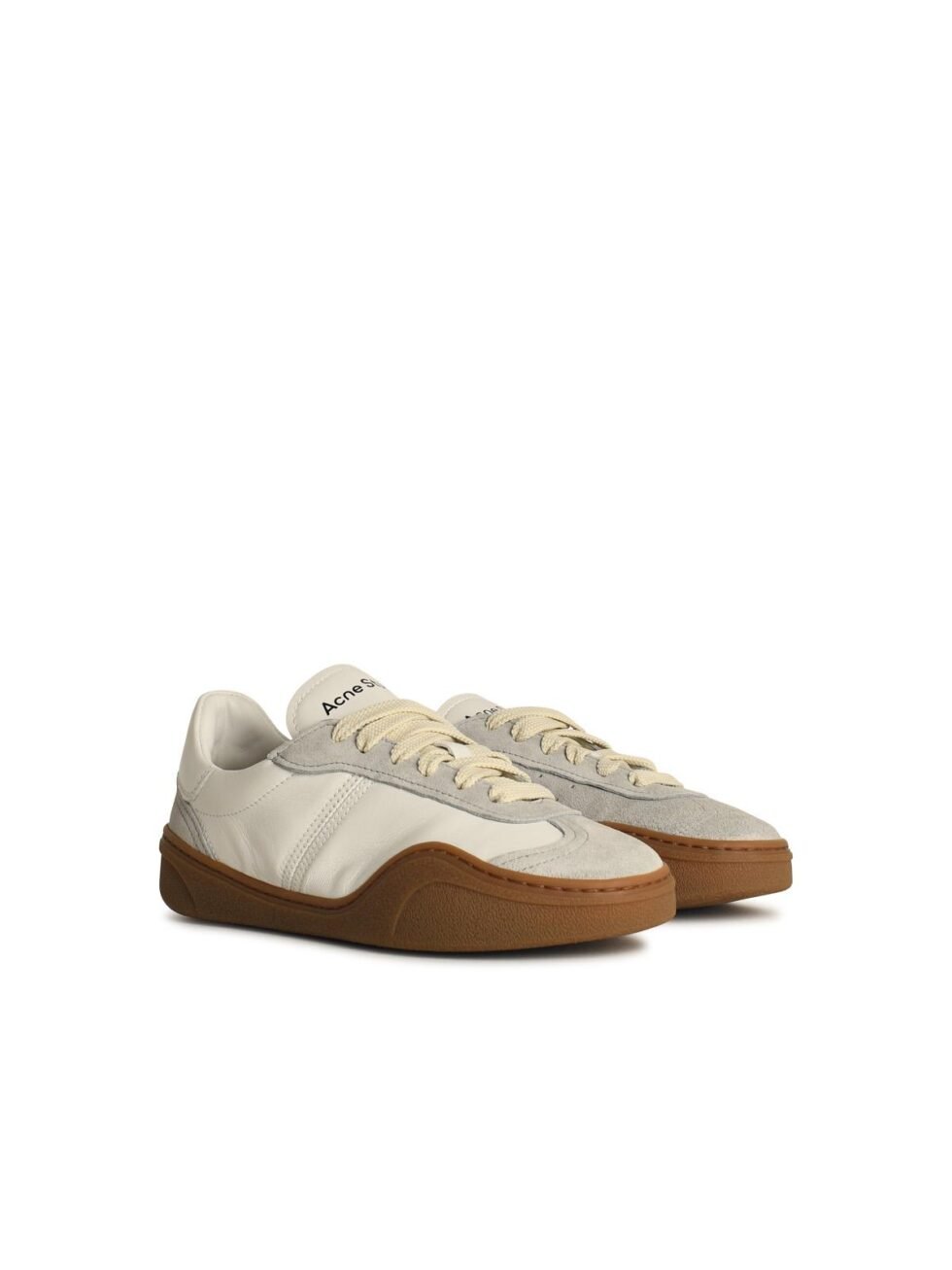 Minimalist design, contrasting suede inserts, flat laces, contrast logo