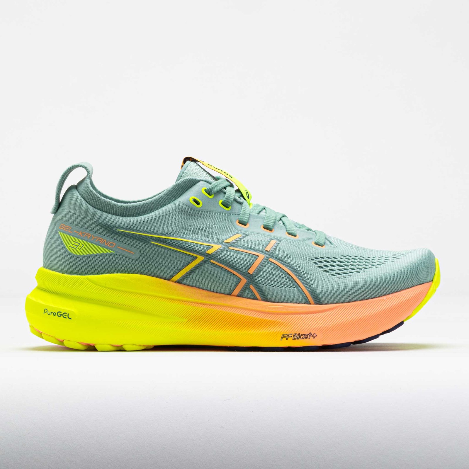 Move through the miles in the ASICS GEL-Kayano 31! This legendary support shoe provides adaptive stability and reliable traction with every step. The 4D Guidance System? leads your foot through a more efficient and balanced stride. This technology adapts to your form when it fades. providing smooth and dependable support. Enjoy soft landings from the Rearfoot PureGEL? technology. while FF BLAST? PLUS ECO offers eco-friendly cushioning. Smooth and supportive. the ASICS GEL-Kayano 31 provides comfort for long distances!