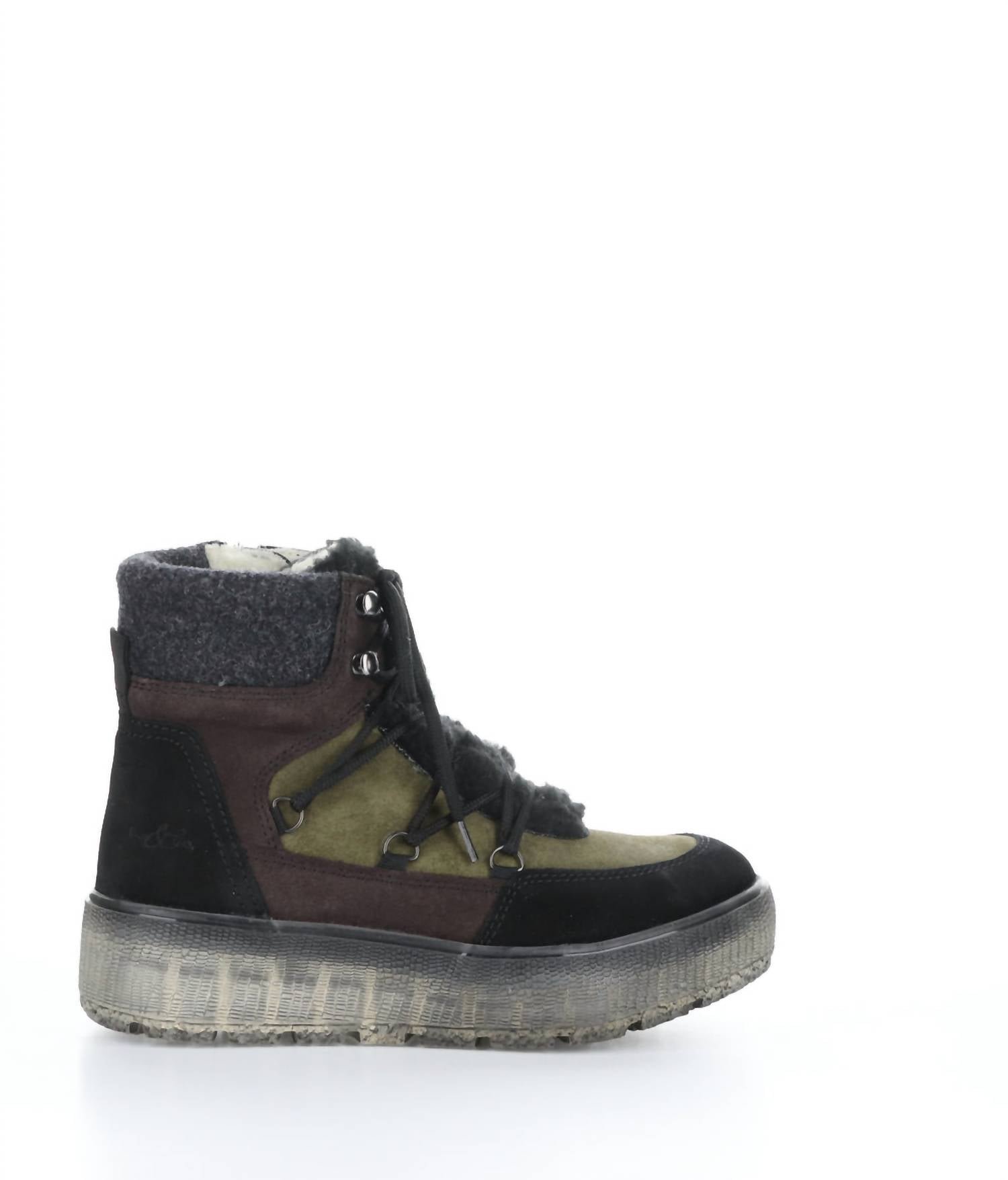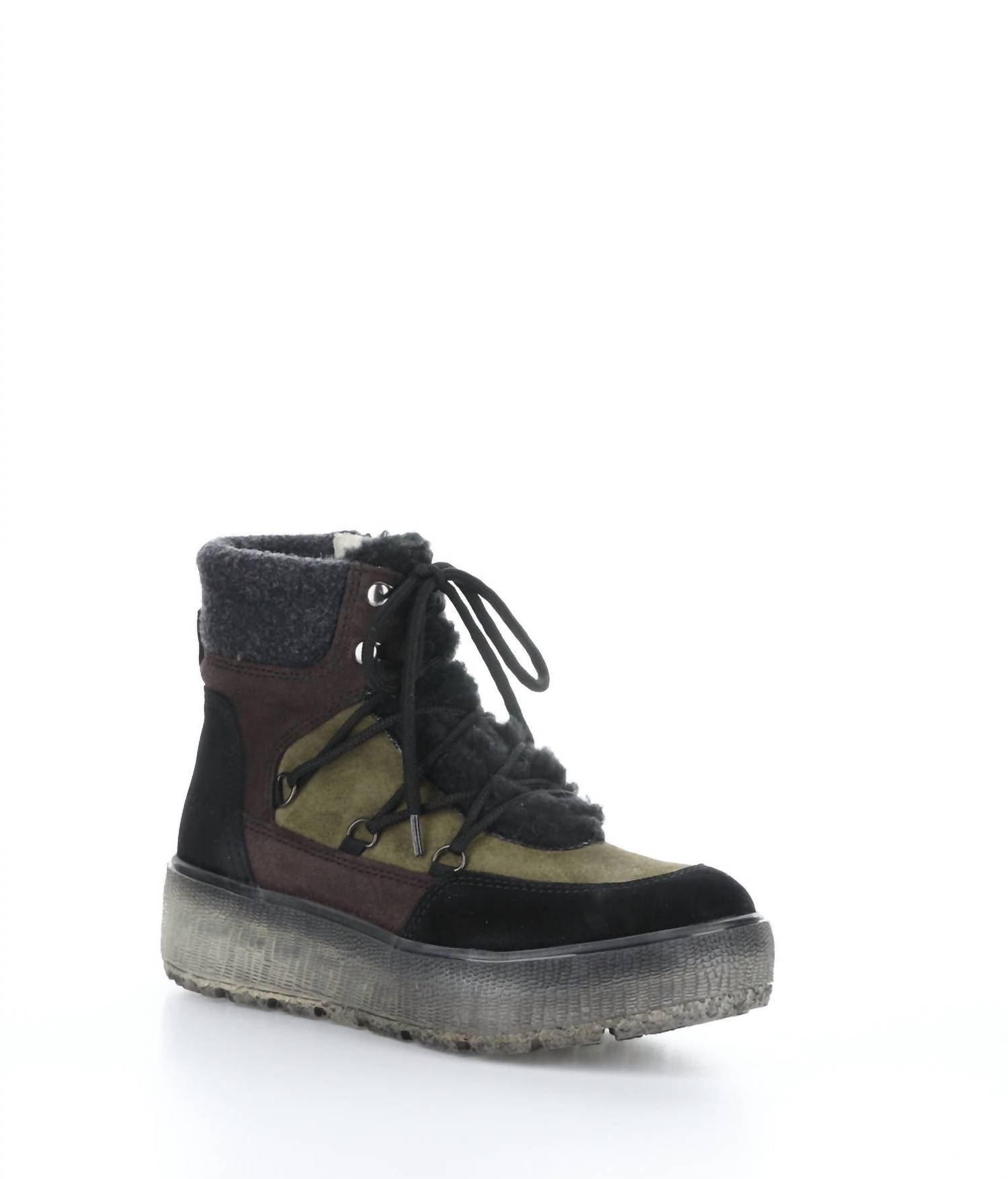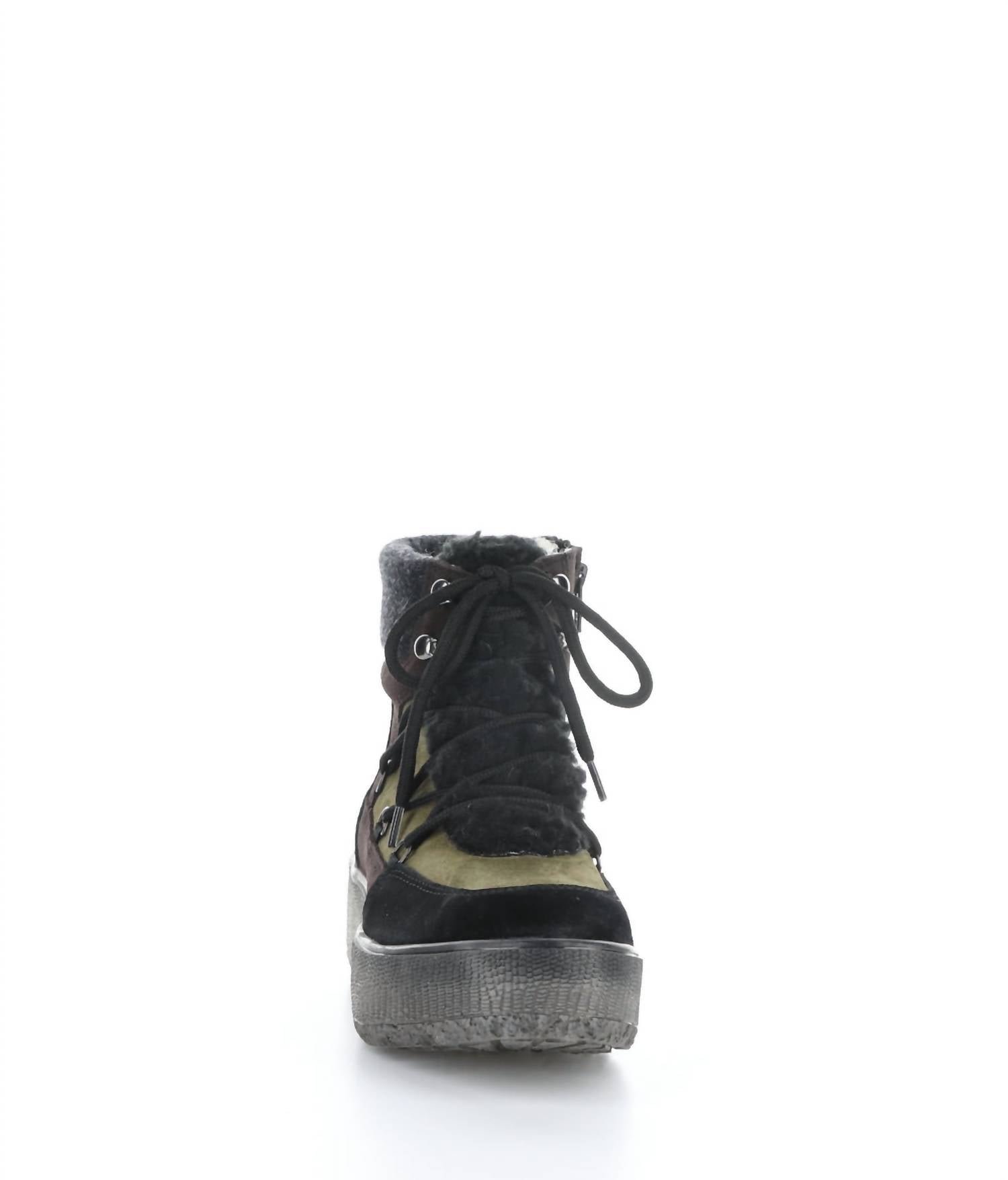 Say hello to the perfect, most versatile boot. The ankle height makes this style easily transition from day to night. Wear them with your favorite skinny jeans and tee for a more laid back look, or pair them with your favorite mini dress and jacket for a night out on the town.Step into style with the Women’s Ideal Waterproof Boot by Bos. & Co., crafted for durability and comfort. These ankle boots feature a Suede and Tweed upper, Merino Wool lining, and an easy side zipper closure, while adjustable laces offer a customized fit. They are designed with a 1.5-inch platform and a 5-inch shaft height, with a 12-inch shaft circumference, making them perfect for any adventure. Made in Portugal, these boots are available in Black/Olive/Plum and are perfect for keeping feet dry and stylish.