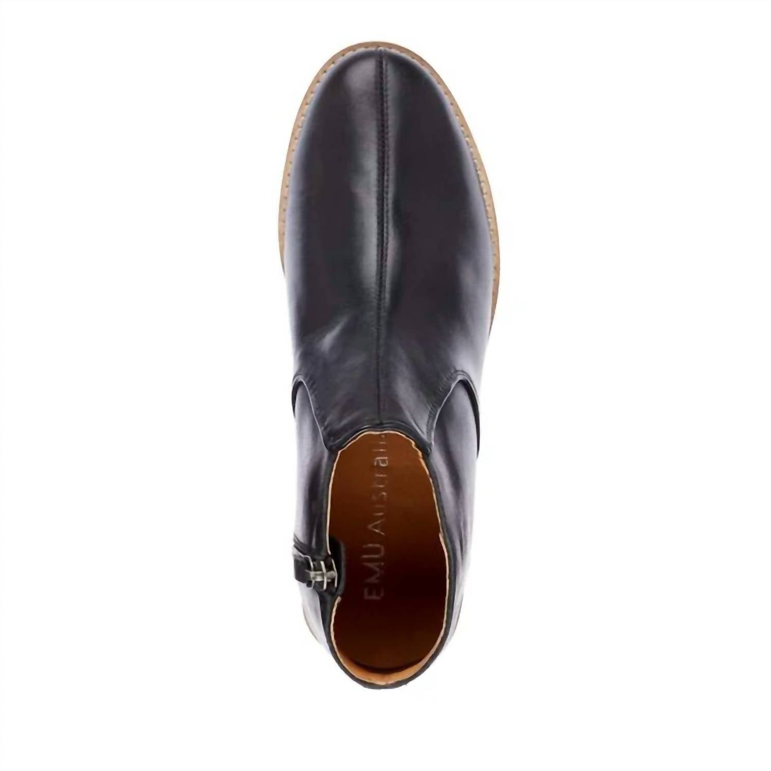 Say hello to the perfect, most versatile boot. The ankle height makes this style easily transition from day to night. Wear them with your favorite skinny jeans and tee for a more laid back look, or pair them with your favorite mini dress and jacket for a night out on the town.Introducing the Women’s Kingston Bootie by EMU Australia, a versatile addition to your ankle boot collection in classic black. Crafted from soft leather, these booties feature an almond toe shape and a flat heel measuring 0.59 inches, perfect for all-day wear. The convenient medial side zip closure ensures easy on-and-off, while the timeless style seamlessly transitions from day to night. Ideal for both casual and dressy occasions, they offer a supportive and comfortable fit for women seeking style and comfort.