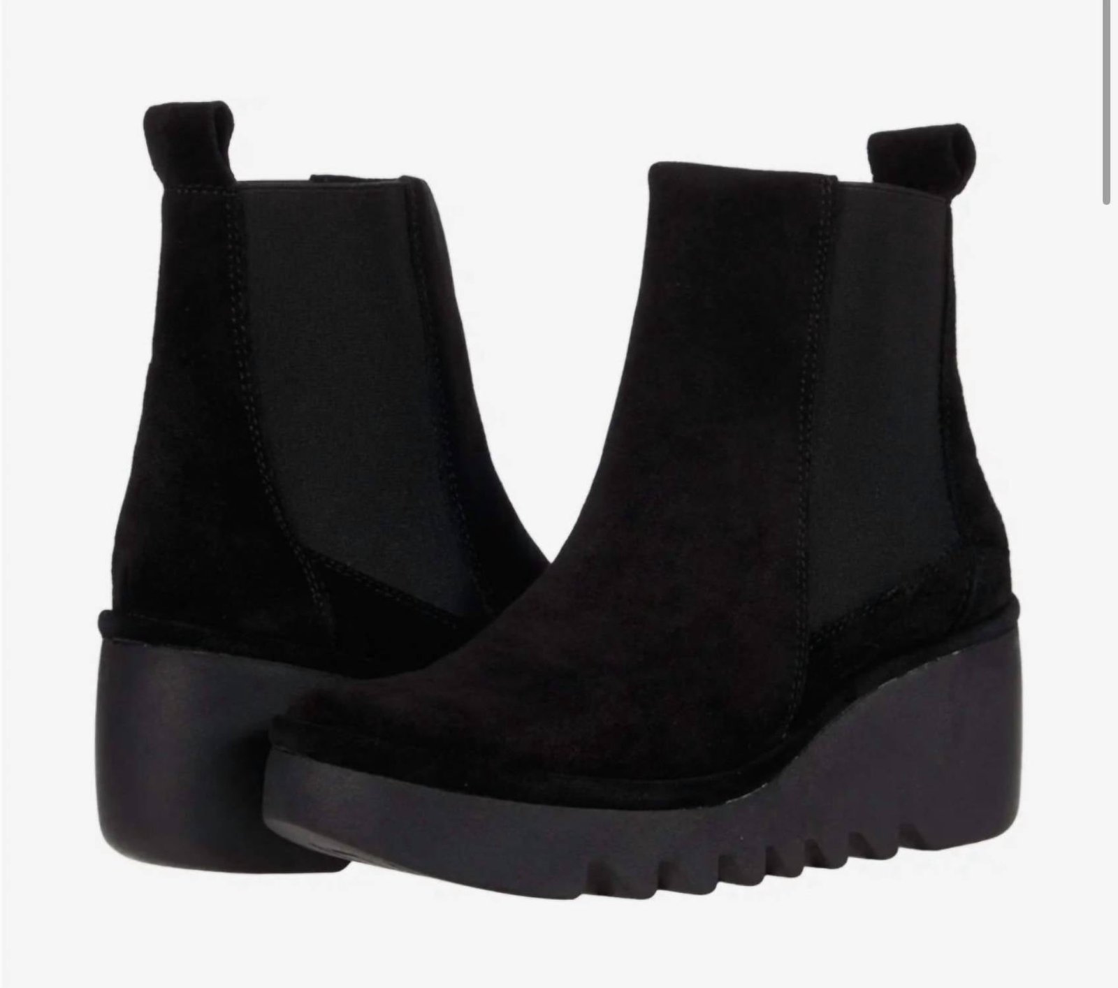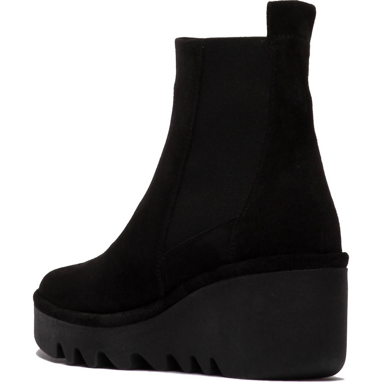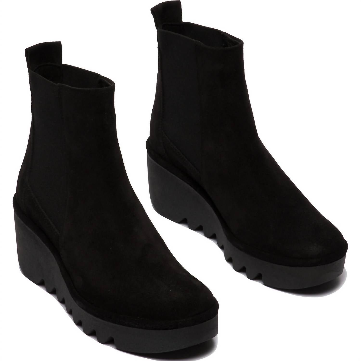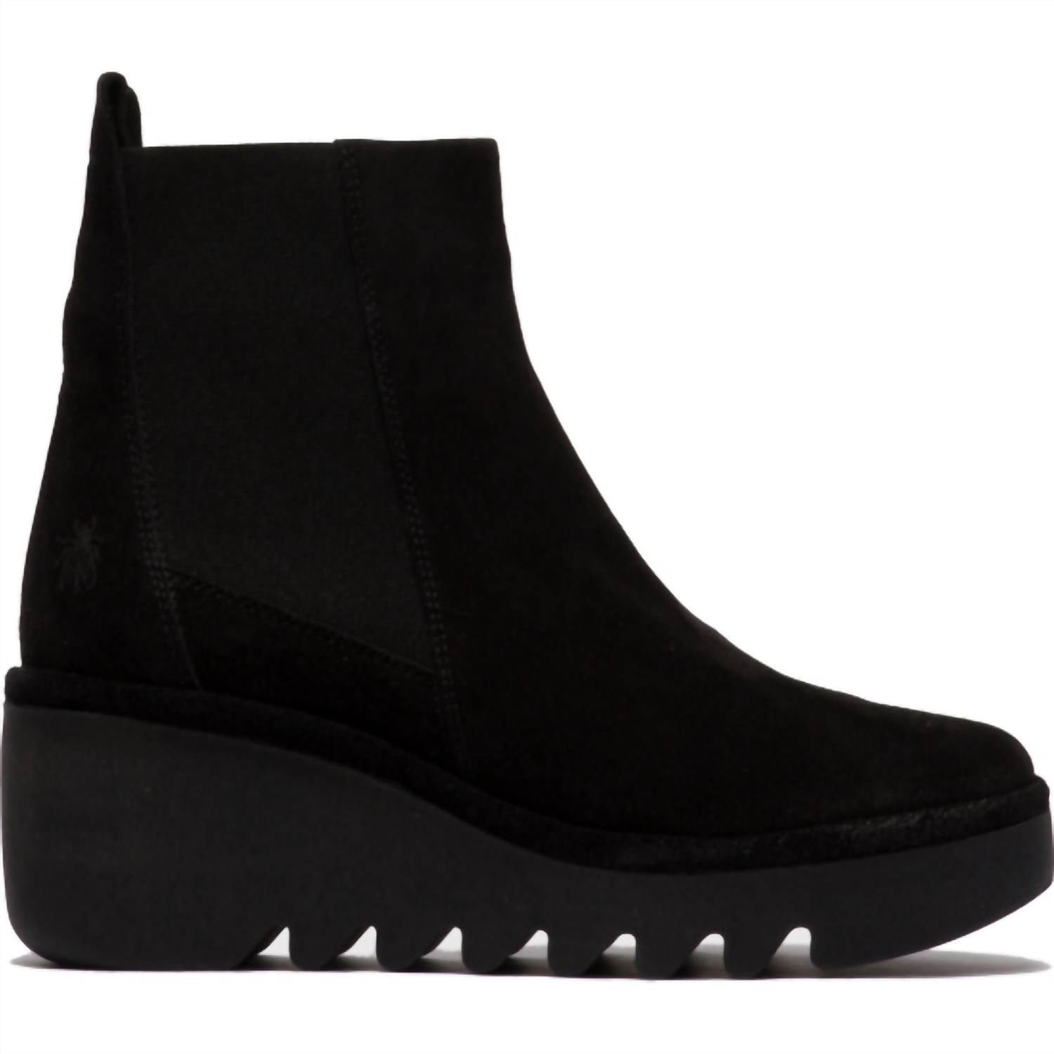 Say hello to the perfect, most versatile boot. The ankle height makes this style easily transition from day to night. Wear them with your favorite skinny jeans and tee for a more laid back look, or pair them with your favorite mini dress and jacket for a night out on the town.Elevate your travel wardrobe with the Women’s Verona Bagu Fly Wedge Suede Bootie by FLY LONDON. This minimalist fall ankle bootie in black features a convenient pull-on style and a mid-height wedge heel measuring 6.5 cm (approximately 2.5 inches), ideal for all-day wear. Crafted from luxurious suede, this bootie is equipped with a leather upper, microfiber lining and insole, and a durable TR rubber sole. Designed with a round toe, it perfectly balances comfort and style, making it a must-have for any adventurous woman.