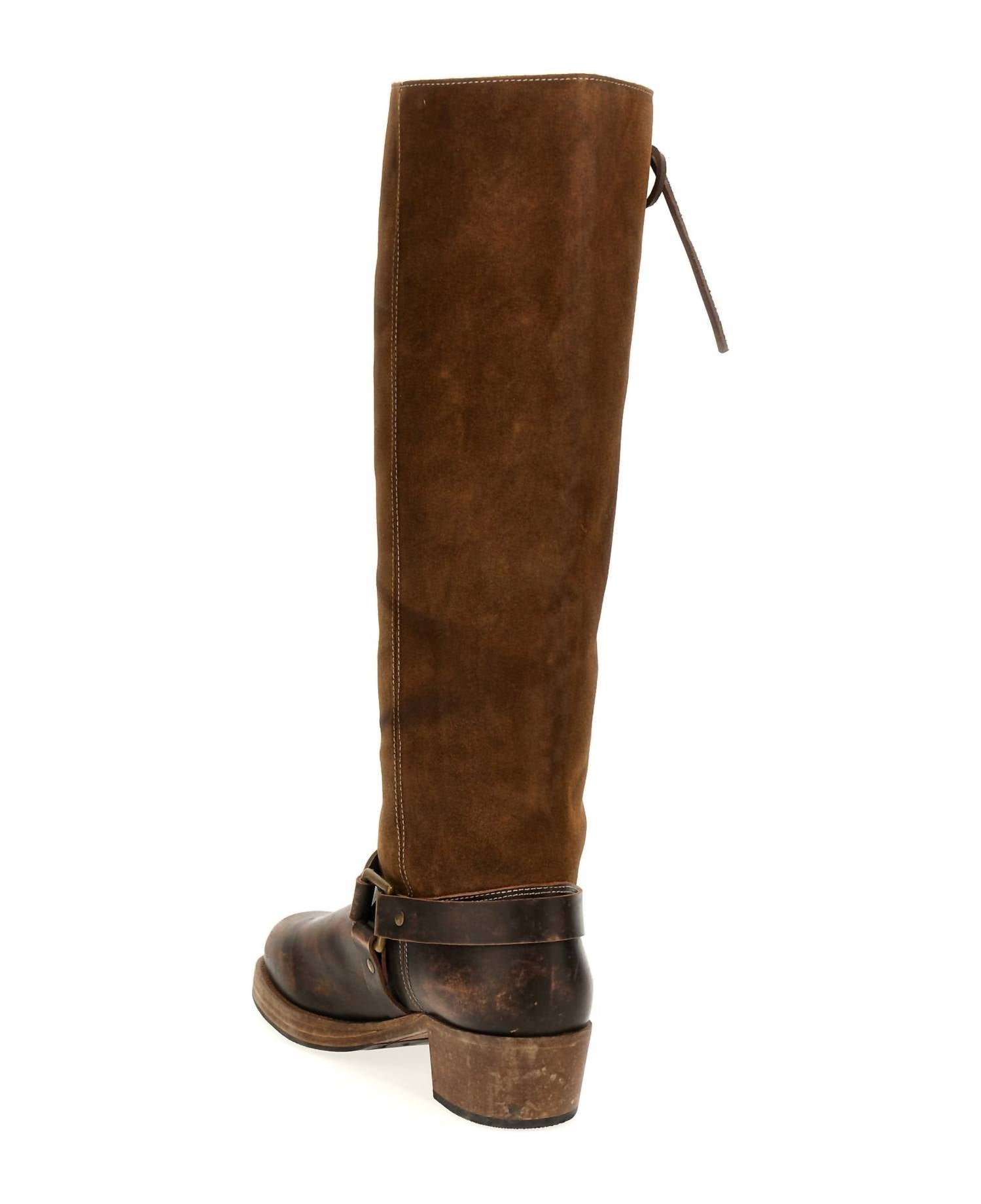 Say hello to the perfect, most versatile boot. The ankle height makes this style easily transition from day to night. Wear them with your favorite skinny jeans and tee for a more laid back look, or pair them with your favorite mini dress and jacket for a night out on the town.Step into timeless elegance with the Fortela ‘River’ Boots, designed in a sophisticated brown leather and suede with a vintage effect. These ankle boots feature distinctive metal details, a convenient drawstring at the top, and a comfortable low heel, perfect for style-savvy adults. Composition: 100% cowhide leather. Embrace the allure of round toe design and let these boots become your go-to choice for vintage-inspired looks. Condition: Excellent.