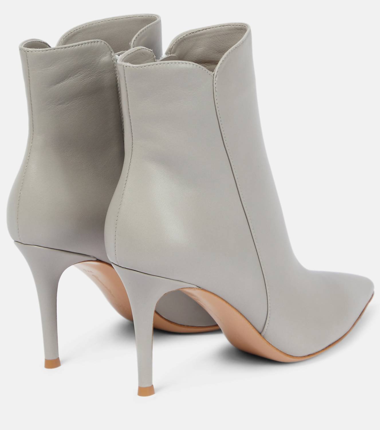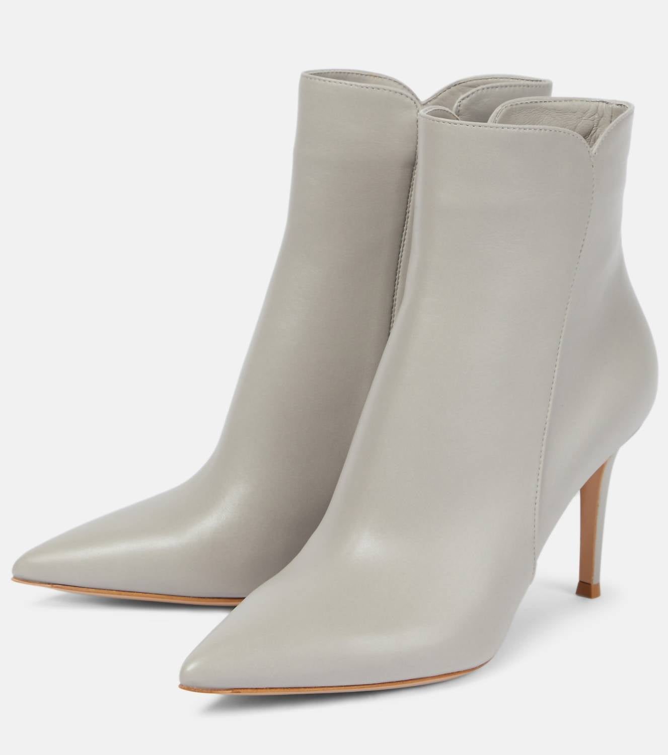 Step out in confidence and showcase your impeccable taste with these fashionable and versatile boots. Their classic style will have you reaching for these boots season after season.Step into elegance with the Levy 85mm Boots by Gianvito Rossi, featuring a sleek pointed toe and soft leather composition. This Italian masterpiece is distinguished by its curved upper edge detail and tonal stitching. Crafted from 100% Nappa leather, these heeled boots boast a striking 3.3-inch stiletto heel. Perfect for making a sophisticated statement in shadow color.