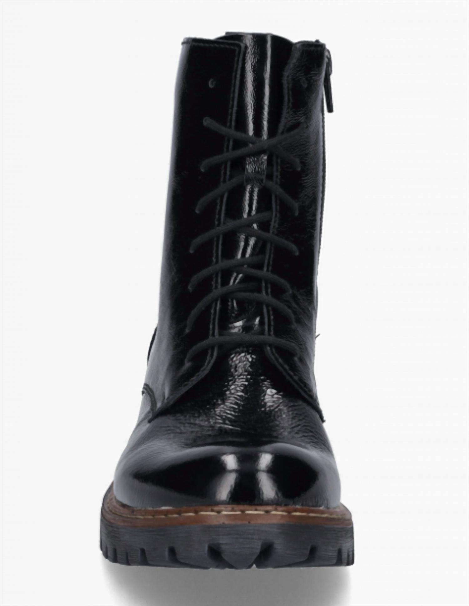 Say hello to the perfect, most versatile boot. The ankle height makes this style easily transition from day to night. Wear them with your favorite skinny jeans and tee for a more laid back look, or pair them with your favorite mini dress and jacket for a night out on the town.This stylish patent combat boot combines bold looks with all-day comfort. It features a cozy warm lining to keep your feet snug, an inside zip for easy on and off, and a chunky lug sole design with surprisingly lightweight construction. Supportive and comfortable, it’s perfect for cold-weather wear with a touch of edge.