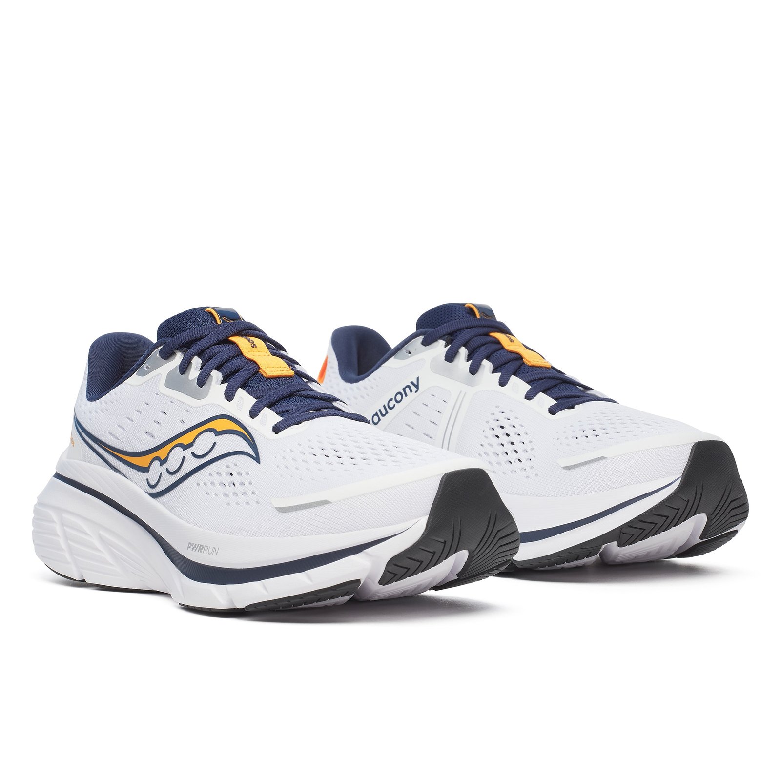 Your personal ‘guide’ to smoother strides! Your brilliantly refreshed Men’s Saucony Guide 18 running shoes have been revamped with a deep-seated footbed that keeps you firmly grounded yet ready for flight. Thanks to Center Path Technology, each step flows seamlessly from heel to toe, giving you a balanced, steady rhythm. Sink into an abundance of soft PWRRUN foam this time around, for cloud-like landings, while the XT-900 carbon rubber outsole holds onto the earth beneath you. With a breathable mesh upper, the Guide 18 is built to keep pace with your journey, no detours, just pure forward motion!