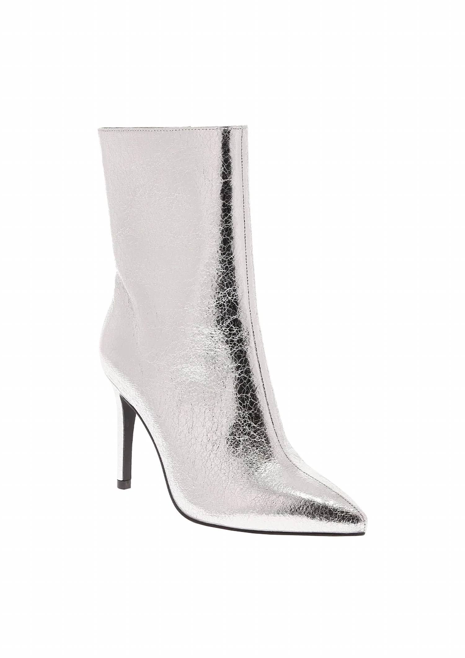 A stylish boot with a comfortable fit and the perfect amount of height. These classic boots are the perfect addition to any outfit and can be worn season after season.Elevate your fall wardrobe, featuring a sleek almond-toe silhouette that epitomizes sophistication. Stunning heeled boots come in a metallic silver finish, resting on a comfortable 3.1-inch stiletto heel, perfect for a night out or a New Year’s Eve celebration. Designed with an anatomically contoured footbed, provide both style and comfort. Ideal for concerts or embracing the Y2K trend.