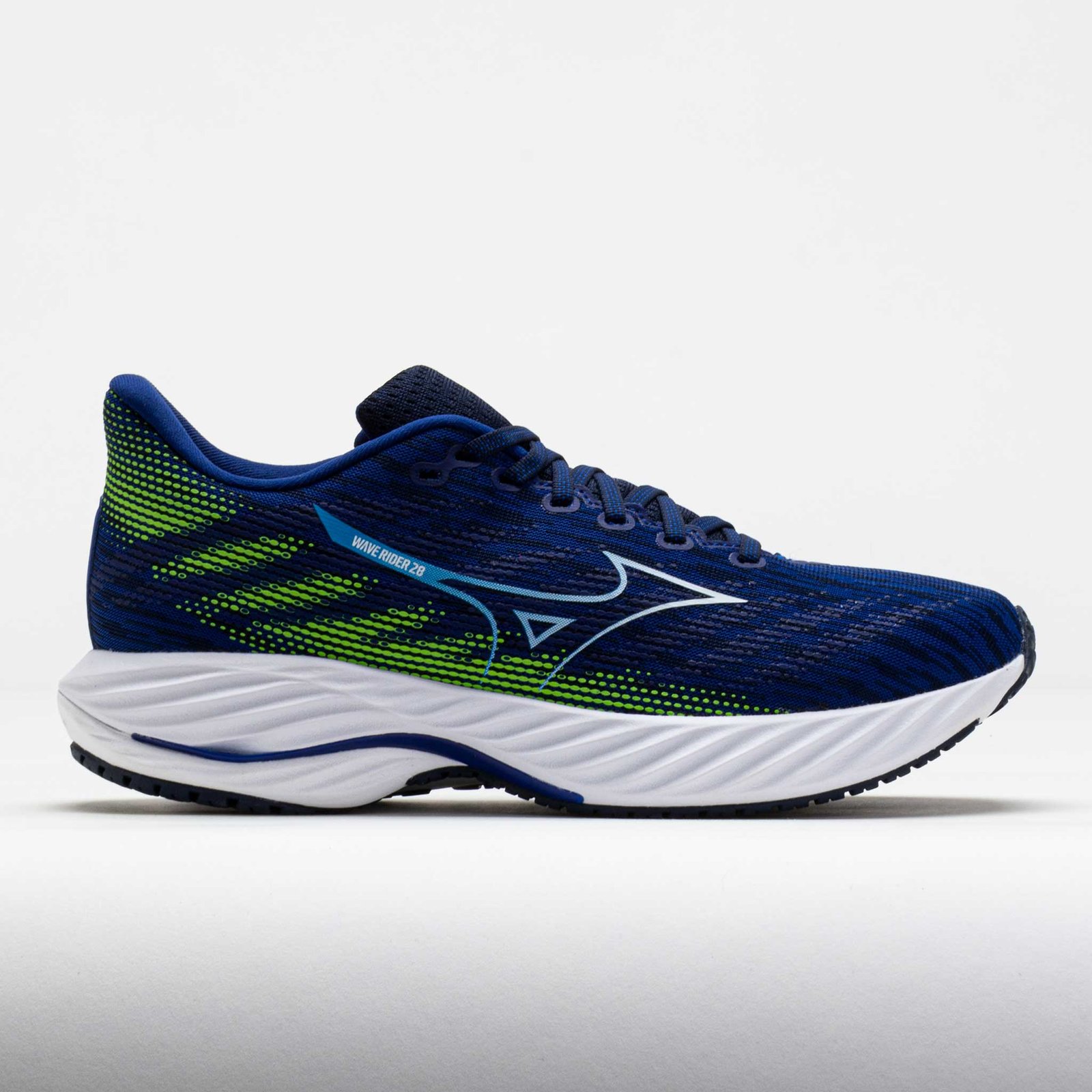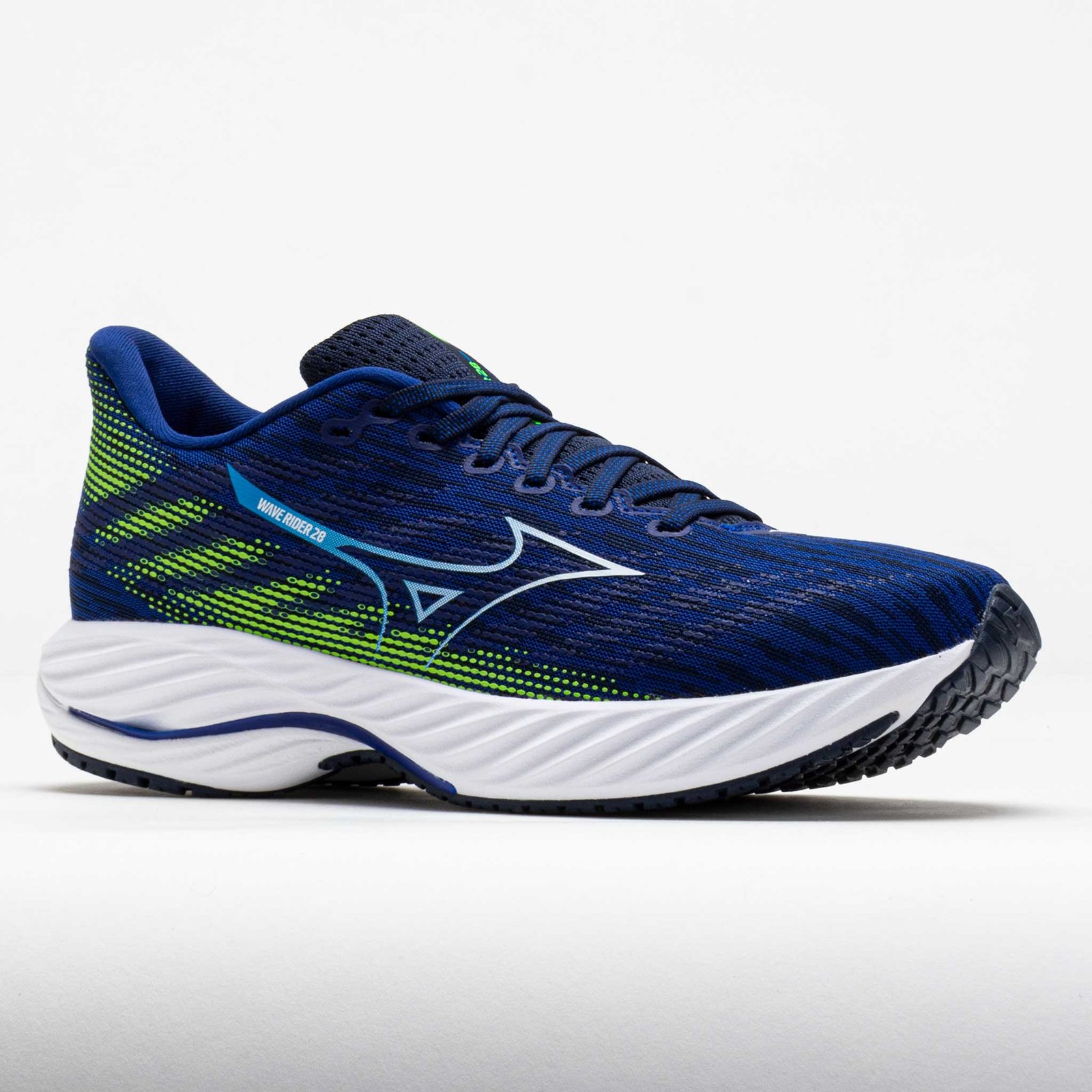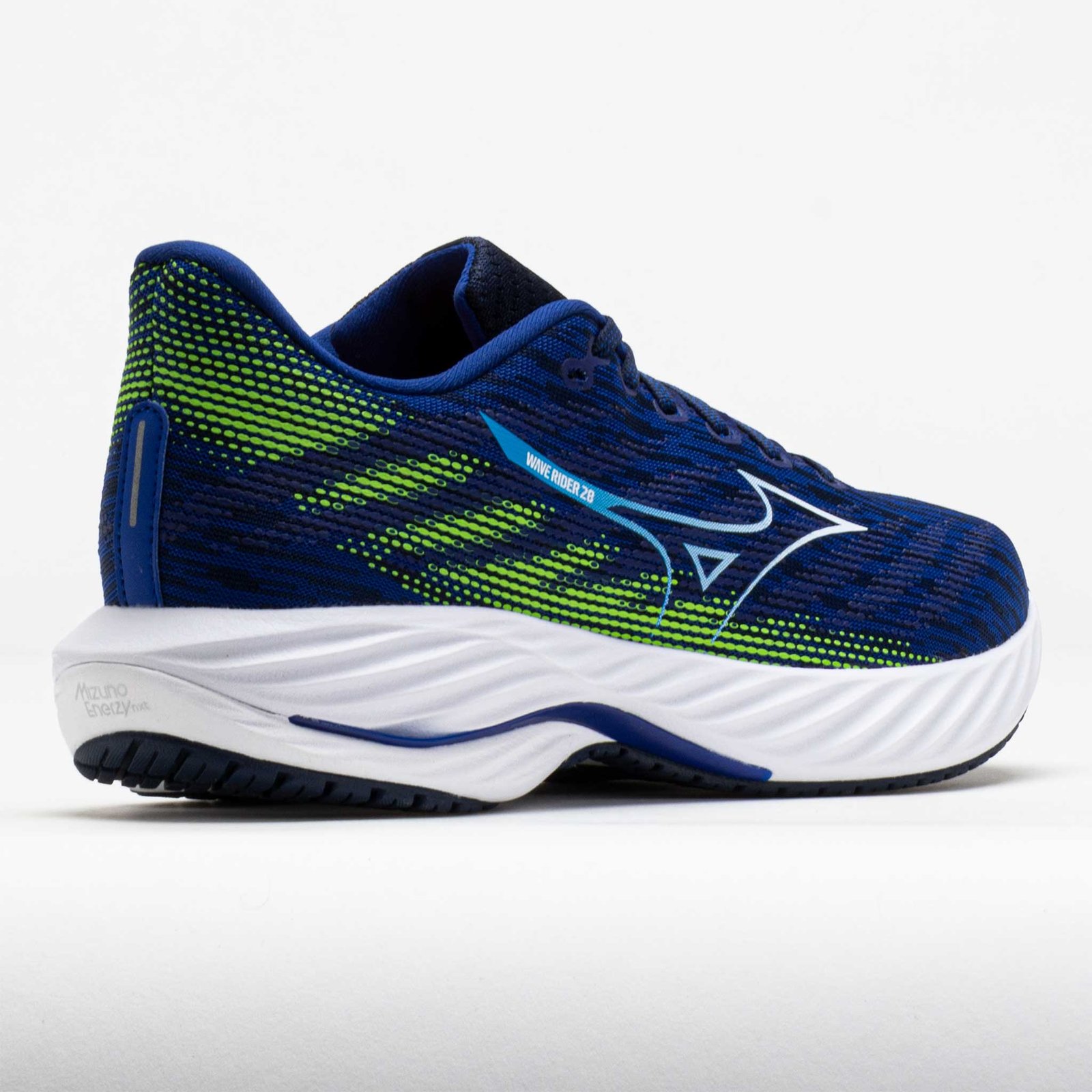 Enjoy smooth transitions in the Mizuno Wave Rider 28! Updated with a Jacquard Air Mesh upper. this neutral daily trainer keeps you cool and comfortable. The Mizuno ENERZY NXT midsole adds softness while reducing environmental impact. Get durability for daily mileage from the X10 carbon rubber outsole. Smooth. light and propulsive. the Mizuno Wave Rider 28 unleashes your inner drive!