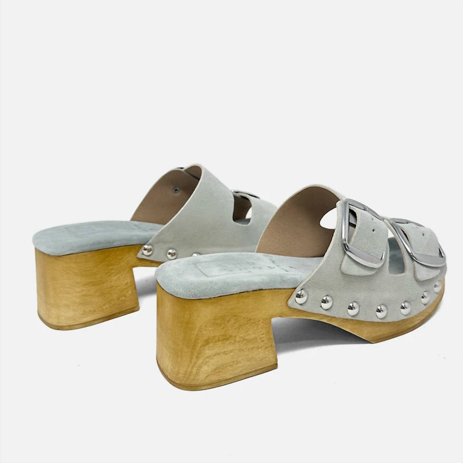 Slip them on and go! Introducing the Women’s Juno Clogs by SHU SHOP, a chic addition to your spring wardrobe in a soft sage hue. Crafted with a leather upper and a faux wood bottom, these clogs feature an edgy stud detail paired with functional buckles for a stunning 90s-inspired look. Perfect for vacations, Thanksgiving gatherings, or any stylish occasion. Embrace the open toe and block heel design for the ultimate blend of timeless elegance and contemporary fashion.