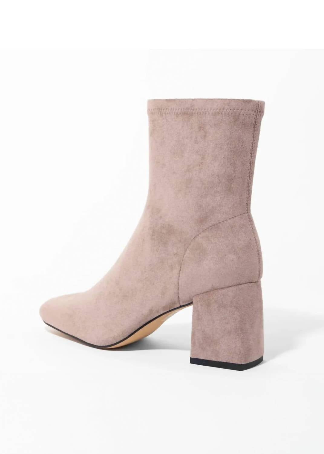Say hello to the perfect, most versatile boot. The ankle height makes this style easily transition from day to night. Wear them with your favorite skinny jeans and tee for a more laid back look, or pair them with your favorite mini dress and jacket for a night out on the town.Expertly crafted in luxurious stretch suede for a sophisticated look. These ankle boots feature a comfortable fabric lining and a cushioned footbed, making them perfect for all-day wear. With a squared toe and a sturdy block heel measuring approximately 2.5′, these boots offer both elegance and stability. They are made in China and include a convenient side zipper entry for easy on and off.