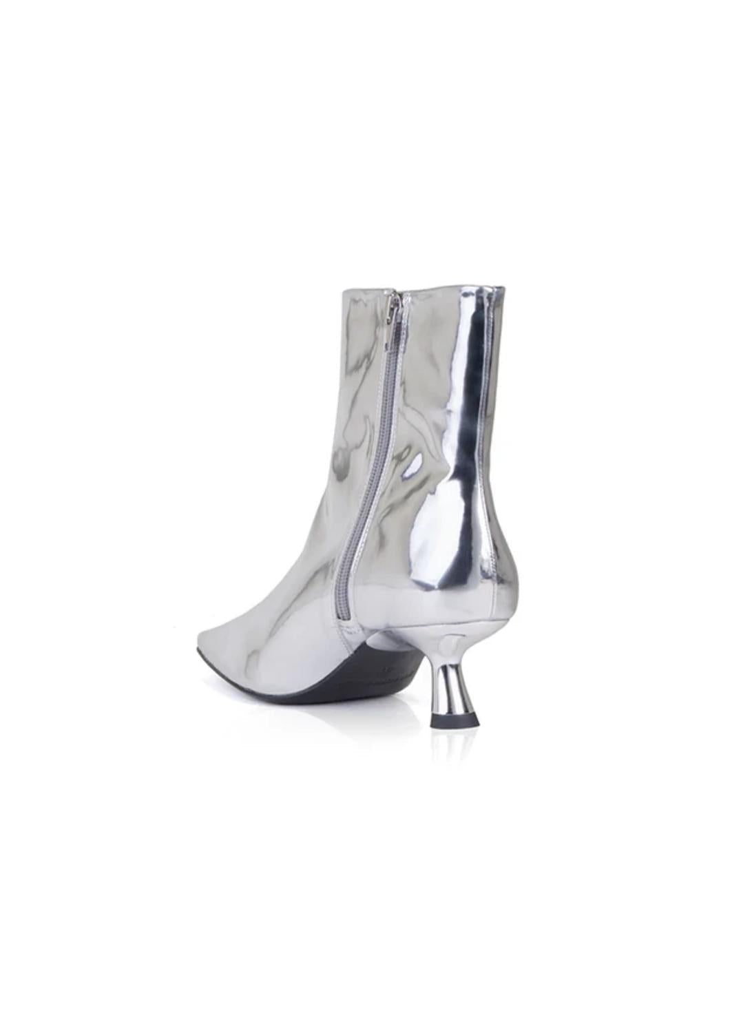 Say hello to the perfect, most versatile boot. The ankle height makes this style easily transition from day to night. Wear them with your favorite skinny jeans and tee for a more laid back look, or pair them with your favorite mini dress and jacket for a night out on the town.Step into elegance with the SIMON MILLER Women’s Kuki Ankle Boot, a stunning addition to any wardrobe. These chrome boots are crafted from 100% leather, showcasing a sophisticated pointed toe and a sculptural kitten heel that measures 5cm (2 inches) for a sleek and modern silhouette. With a convenient zip closure and a boot shaft height of 16cm, they offer both style and comfort. Perfectly fitting true to size, these boots use European sizing to ensure a flawless fit.