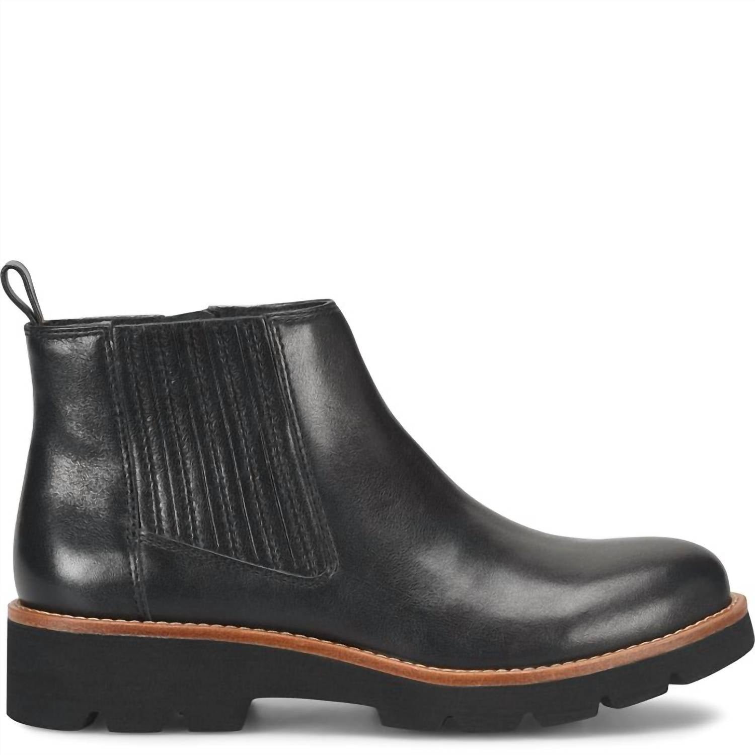 Say hello to the perfect, most versatile boot. The ankle height makes this style easily transition from day to night. Wear them with your favorite skinny jeans and tee for a more laid back look, or pair them with your favorite mini dress and jacket for a night out on the town.Introducing the Women’s Paige Boots by Sofft, where functionality meets fashion. These black Chelsea boots from the AQUA S?fft collection feature waterproof full-grain and Italian leathers for superior wet-weather protection. The boots are equipped with a slip-resistant, rubber-EVA blend lugged outsole, a hidden stretch goring panel, and an inside zipper with a leather pull for easy wear. Enjoy comfort with the soft microfiber lining and leather-lined footbed, cushioned at the ball and heel, with arch support, all resting on a low 1.5-inch chunky heel. Designed with a stylish almond toe shape, these boots promise both comfort and style for any adventure.