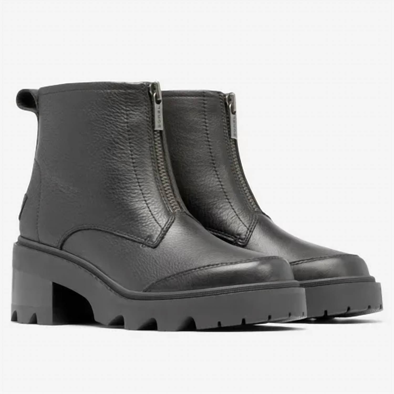 Say hello to the perfect, most versatile boot. The ankle height makes this style easily transition from day to night. Wear them with your favorite skinny jeans and tee for a more laid back look, or pair them with your favorite mini dress and jacket for a night out on the town.The JOAN NOW? ZIP boots are classic yet never boring. Perfect for work or a night out. Discover your go-to boots.UPPER: Waterproof materials. Available in full grain leather and suede. Front center zip for a secure fit. Heel pull tab. Canvas and synthetic lining.FOOTBED: Removable EVA footbed with canvas topcover.MIDSOLE: Rubber welt construction with stitch detail.OUTSOLE: Leather wrapped heel. Molded EVERTREAD? rubber outsole.HEEL HEIGHT: 2 in.PLATFORM HEIGHT: 3/4 in.SHAFT HEIGHT: 4 3/4 in.SHAFT CIRCUMFERENCE: 9 3/4 in.Please note: Laces and zippers incorporated in SOREL footwear are not waterproof.Measurements based on size 7.Imported
