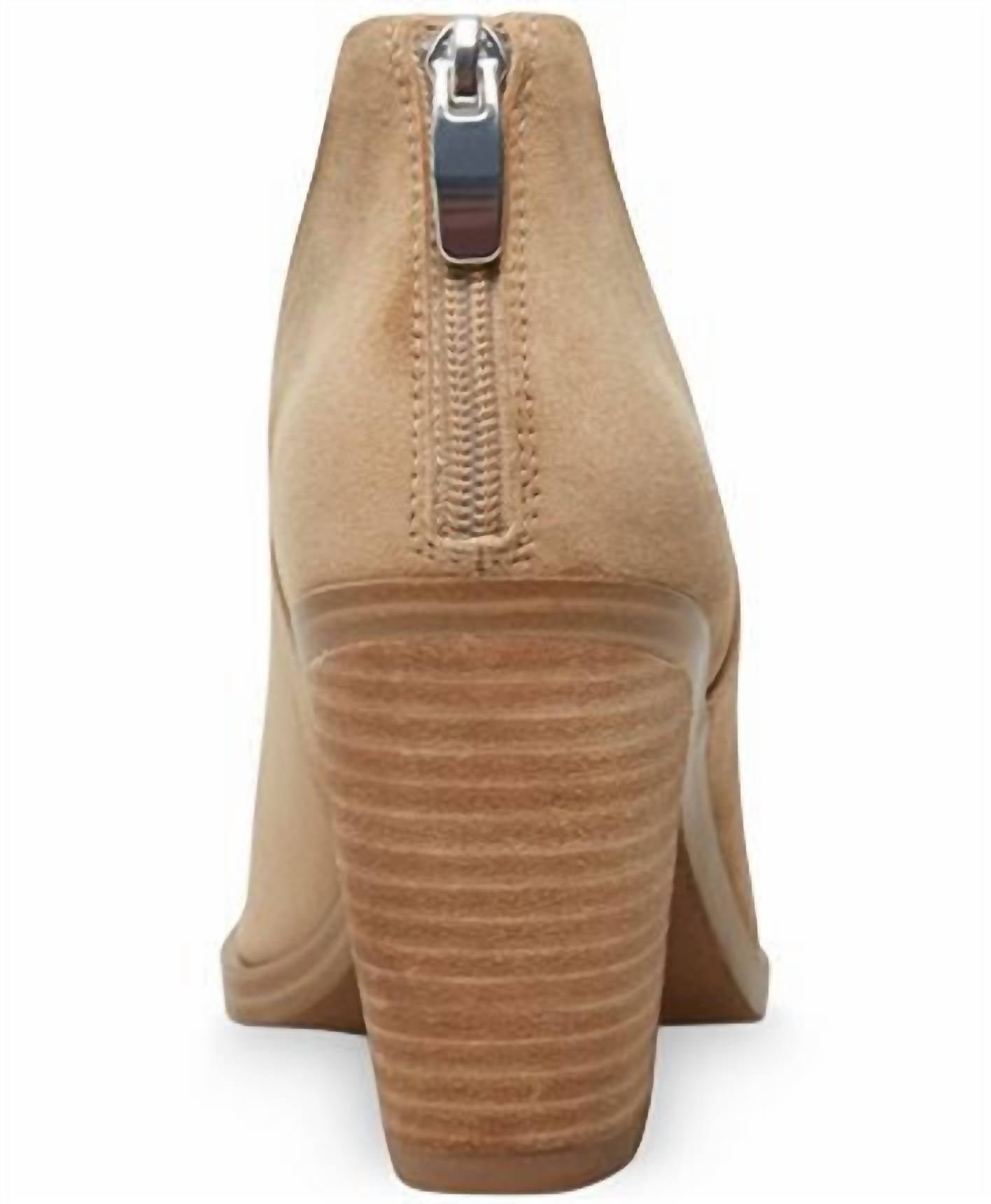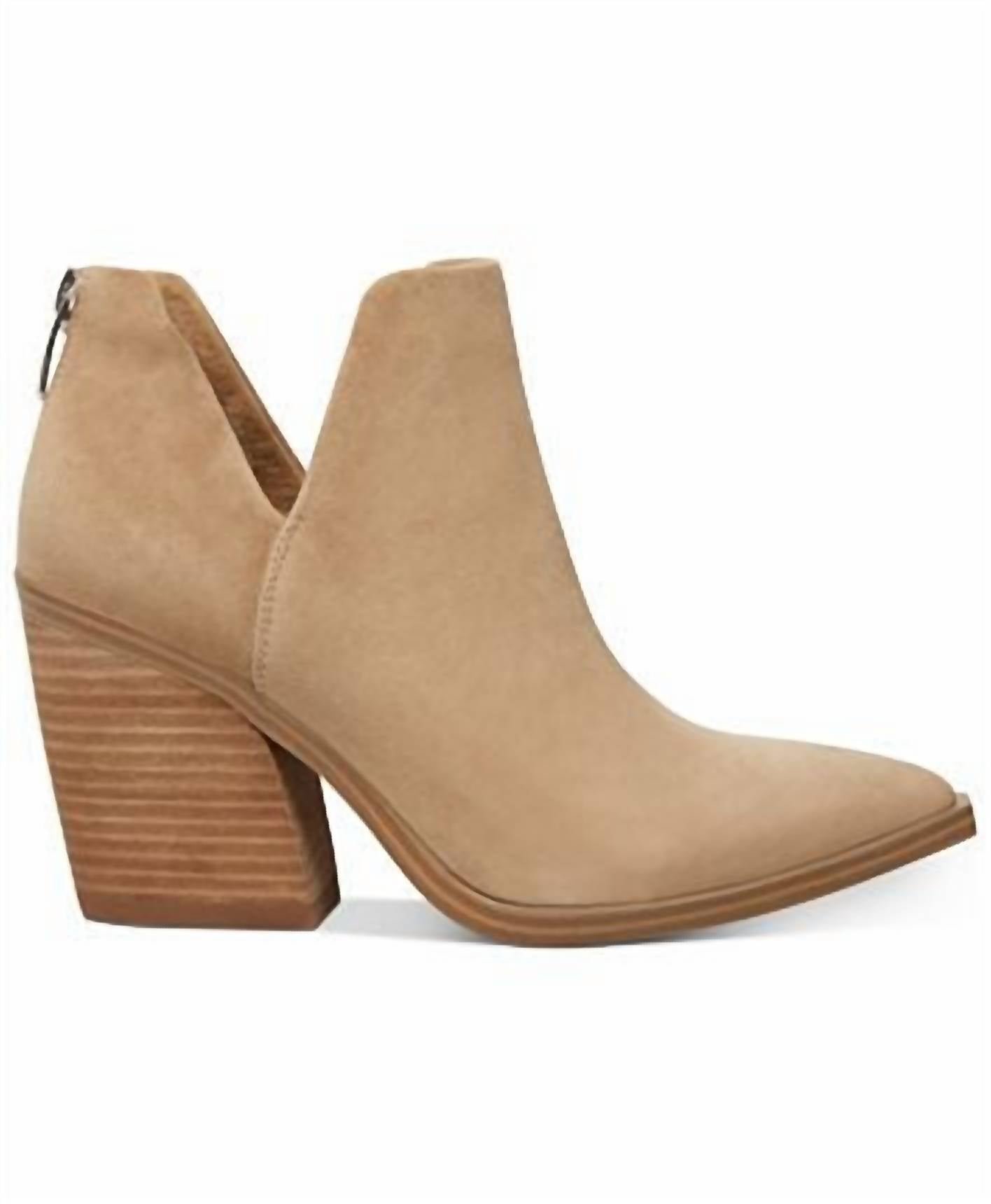 Say hello to the perfect, most versatile boot. The ankle height makes this style easily transition from day to night. Wear them with your favorite skinny jeans and tee for a more laid back look, or pair them with your favorite mini dress and jacket for a night out on the town.Step into sophisticated style with the Women’s Suede Ankle Vnotch Boots by Steve Madden in tan. Featuring a high 3 3/4′ block heel, these boots boast a pointed toe and stylish side cutouts. With a convenient back zipper for easy closure, they are perfect for adding a chic touch to your spring outfit. Crafted from premium suede, these boots are a must-have for any fashion-forward wardrobe.