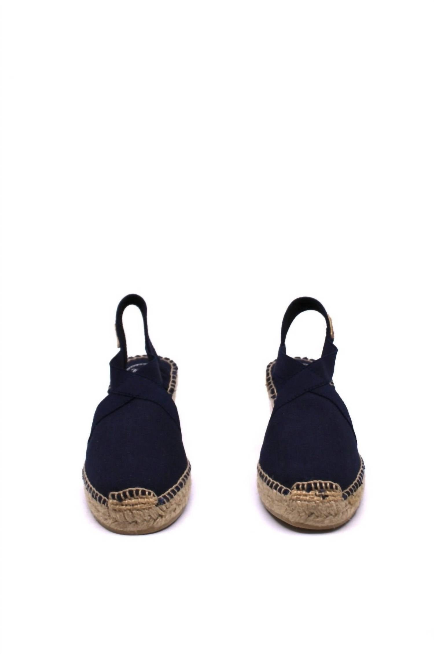 Both stylish and comfortalbe, these espadrilles have it all.Step into summer with the Toni Pons Women’s Ter Wedge Espadrille, a stylish choice in a navy hue perfect for your vacation wardrobe. Designed with an almond toe and a comfortable wedge heel, these espadrilles are crafted from soft cotton and jute, ensuring a breathable fit. Enhanced with two elastic bands, they offer a custom fit while boasting a 100% vegan design for the conscious shopper. Embrace the Boho Chic trend with these must-have espadrilles.