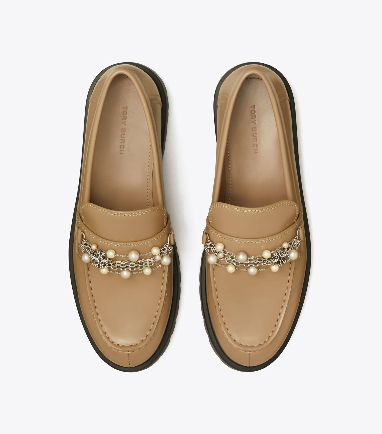 A preppy yet feminine take on the classic loafer.TORY BURCH presents the Women’s Footwear Classic Embellished Lug Loafer in a chic Dark Elk hue, perfect for both workwear and holiday parties. Crafted from luxurious leather with a chain embellishment, these loafers feature a pull-on closure and a stylish lug sole. Designed in the USA, they offer a comfortable medium width and a modern flat chunky heel, ideal for all-day wear. Please note that these loafers are not water-resistant, making them best suited for dry, summer days.