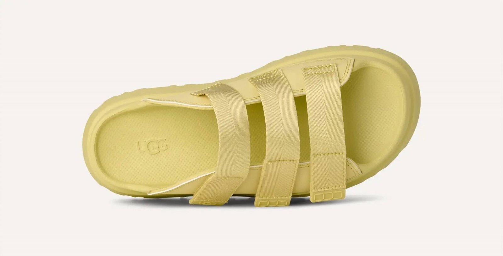 Flowy dresses, cropped pants, and even jumpsuits… this sandal works with them all!These open-toe sandals feature an upper made from synthetic textile with TPU strap ends showcasing the UGG logo, complete with three adjustable hook-and-loop vamp straps crafted from 100% recycled polyester fibers. The sugarcane EVA midsole and outsole provide a lightweight and springy feel perfect for any casual outing. Care and further product details are not specified, reflecting an easy-going approach to style and sustainability.