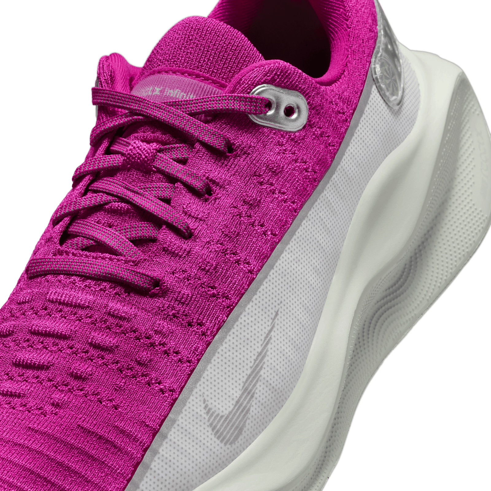 Maximum cushioning in the winterized Nike InfinityRN 4 provides elevated comfort for your runs, day or night. Experience a soft, rocker-shaped platform made with new ReactX foam underfoot and an ultra-comfortable collar and tongue for a snug feel. Plus, reflective paint covers the midsole and extends onto the upper to light up your route.