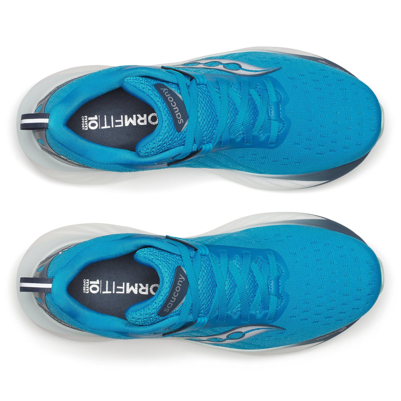 The Saucony Triumph 22 is complete with an engineered mesh upper and features an adaptive lacing system to ensure a snug and secure fit. Coupled with a soft heel collar lining and padded tongue, the Triumph 22 hugs your foot in long-lasting comfort. Overall, the Saucony Triumph 22 is a highly cushioned everyday running shoe with the versatility to handle everything from daily miles to weekend long runs and anything in between.