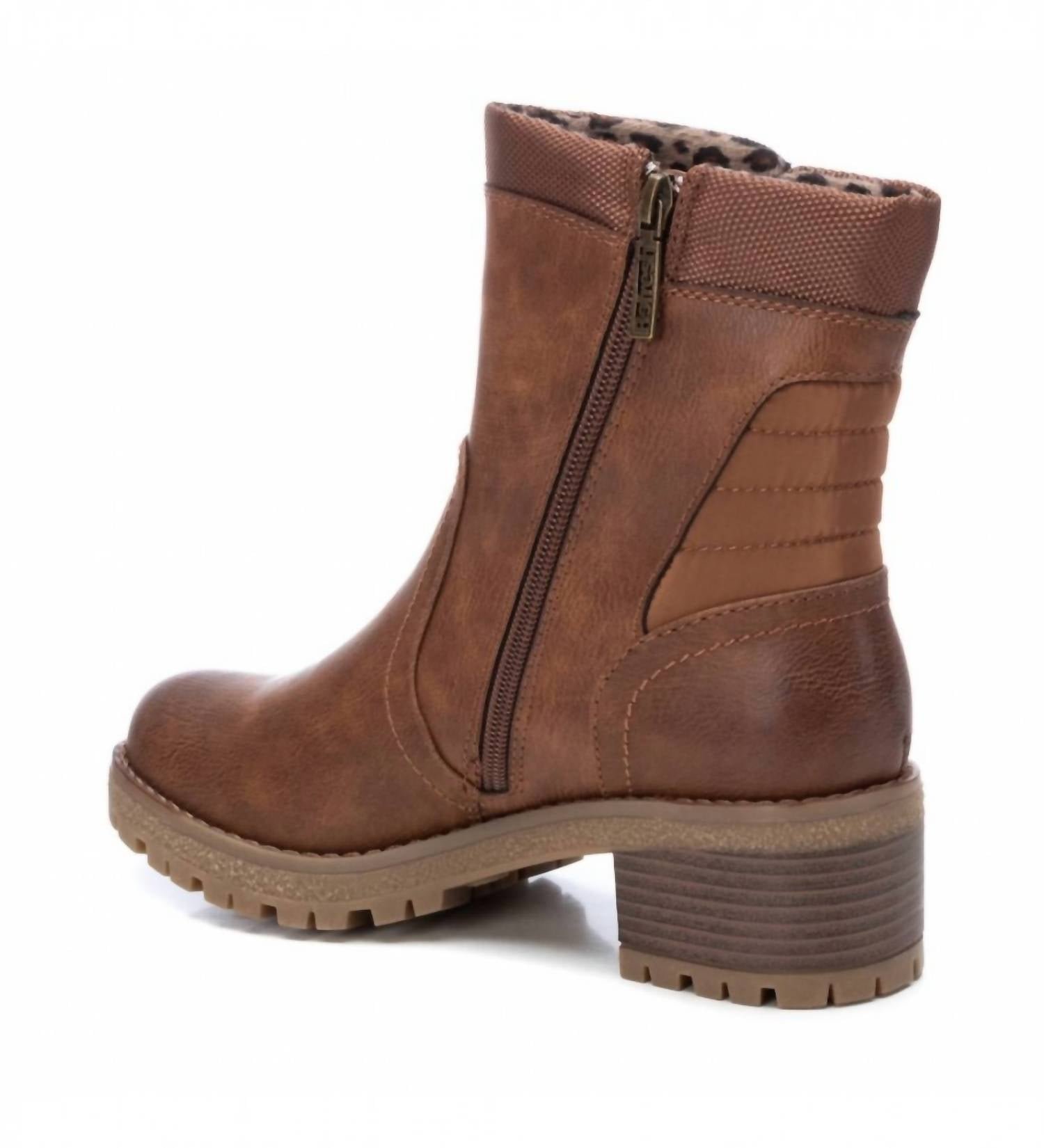 Say hello to the perfect, most versatile boot. The ankle height makes this style easily transition from day to night. Wear them with your favorite skinny jeans and tee for a more laid back look, or pair them with your favorite mini dress and jacket for a night out on the town.Made in material that imitates leather combined with textile.?Side zipper closure. Decorative zipper on the outer side. Lightweight non-slip rubber sole. 1.96 in heel.